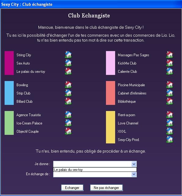 Je viens de tester la nouvelle version et il me semble que la case Echangiste ne fonctionne pas. J'ai un message d'erreur qd je tombe dessus. Puis si je fais continuer la fenetre apparait av les différentes propriétés mais on ne voit pas tte les propriétés et dans "En échange de" aucune propriété n'apparait. comme sur les image si dessous