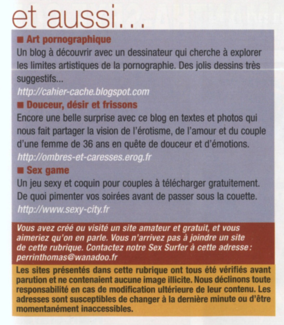 Sur le numéro de février il devait y avoir un lien vers le site dans la rubrique "sites web" et je suis curieux de savoir si il y est. ^^