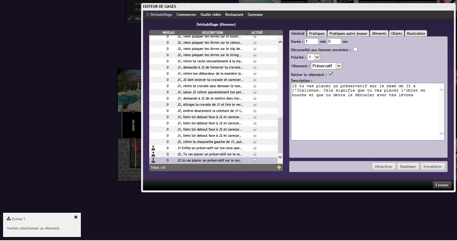 Seulement lorsque je crée un gage je sélectionne le vêtement que j'ai "inventé" mais on me signale une erreur